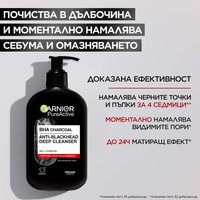 Почистващ гел за лице, обогатенс ВНА киселина и АКТИВЕН ВЪГЛЕН от естествен произход за ефект на чиста и матирана кожа. КЛИНИЧНО ДОКАЗАНО: почиства до 10 слоя грим, замърсявания и себум*, незабавно намалява видимите пори*намалява появата на пъпки и черни точки за 4 седмици ** , матира кожата до 24 часа *. [ВНА] е активен ексфолиант, който доказано намалява петна, черни точки и себум. [АКТИВЕН ВЪГЛЕН] е съставка от естествен произход, която доказано почиства и матира кожата.УПОТРЕБА: Нанасяйте веднъждневно върху влажна кожа. Втрийте внимателно в кожата. Изплакнете. Внимание: В случай на директен контакт с очите, незабавно изплакнете обилно. *Клиничен тест, 35 доброволци. ** Клиничен тест, 52 доброволци.